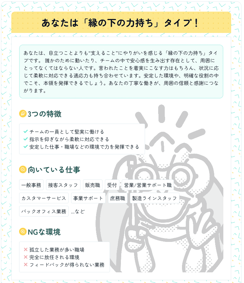 ちなみに私は控えめな回答をしたので、以下のような診断結果に。